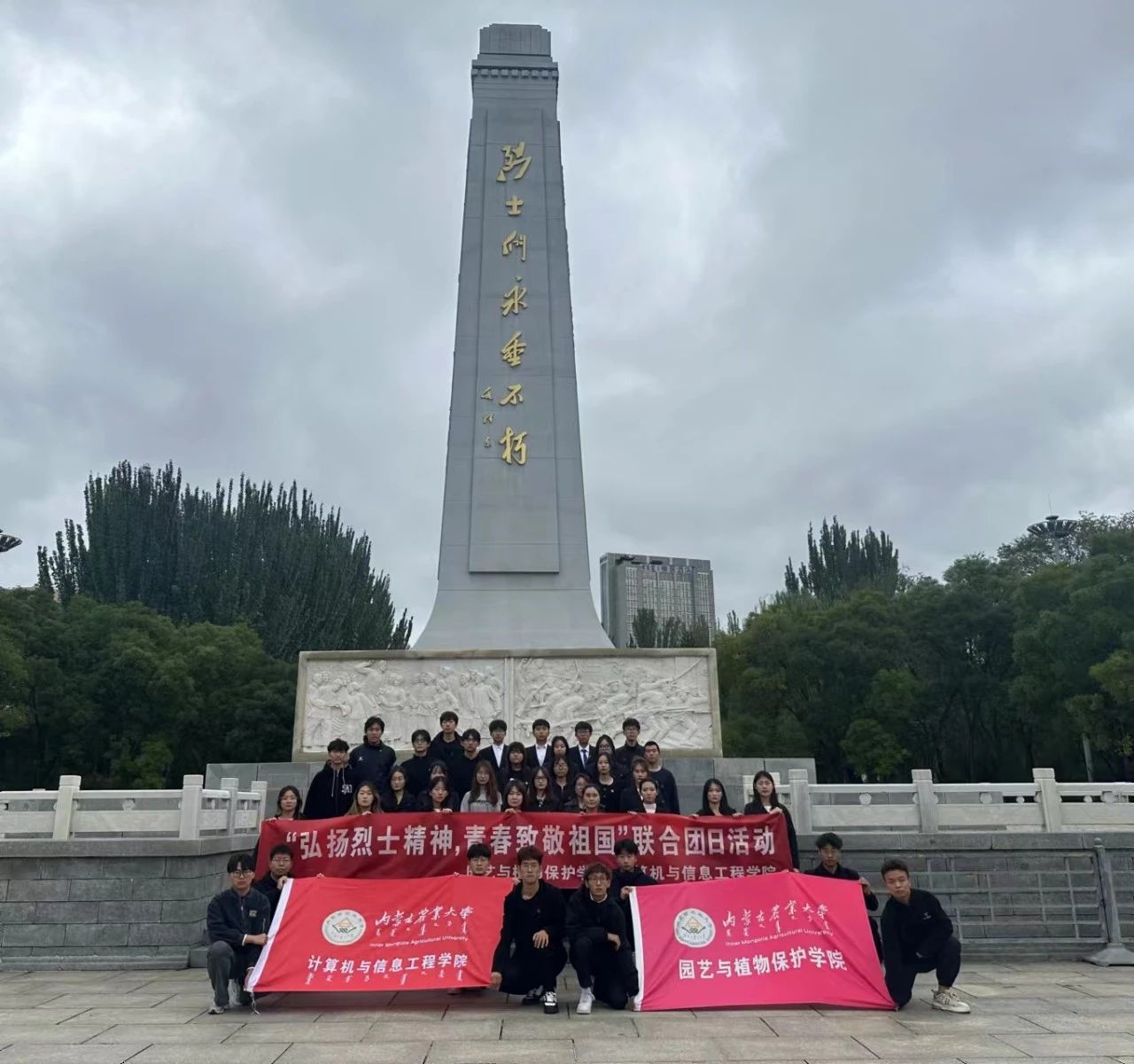 在烈士纪念日到来之际,为了缅怀革命先烈,传承红色基因,激发同学们的爱国热情和奋斗精神。9月29日下午,公司联合计算机与信息工程公司在呼和浩特市青城公园烈士纪念碑前开展“弘扬烈士精神,青春致敬祖国”主题团日活动。计算机院团委老师尤月、公司团委老师郝凤英以及员工代表共计50余人参加此次活动。