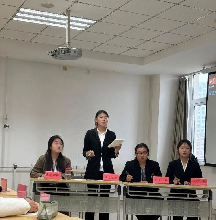 比赛现场气氛热烈,紧张有序。双方辩手你来我往,唇枪舌剑。在自由辩论环节,更是高潮迭起,精彩不断。面对扑面而来的问题,辩手们充分展现了她们的敏捷应变能力以及团队合作能力。