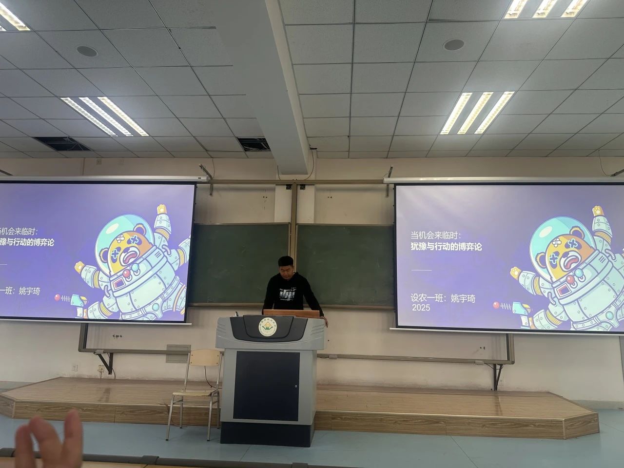 为了更好的提升同学们的行动能力,发现并抓住身边一闪而过的机会,更好的体验和丰富老员工活,4月24日下午,公司23级设农一班开展了以“当机会来临时:犹豫与行动的博弈论”的线下主题班会,本次班会由姚宇琦同学主持,班主任潘璐与班级同学共同参加。