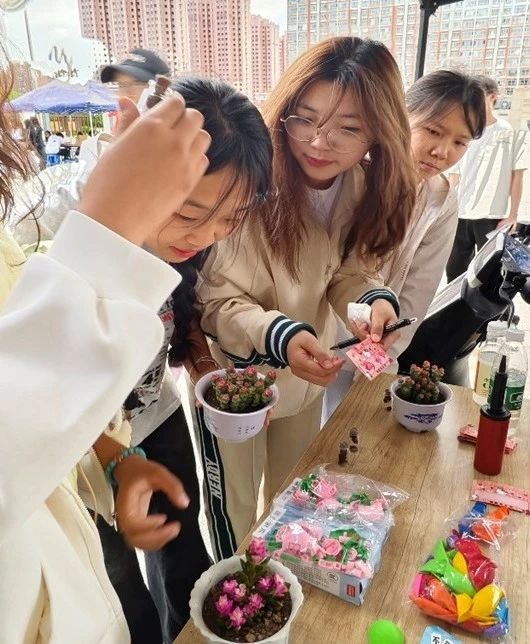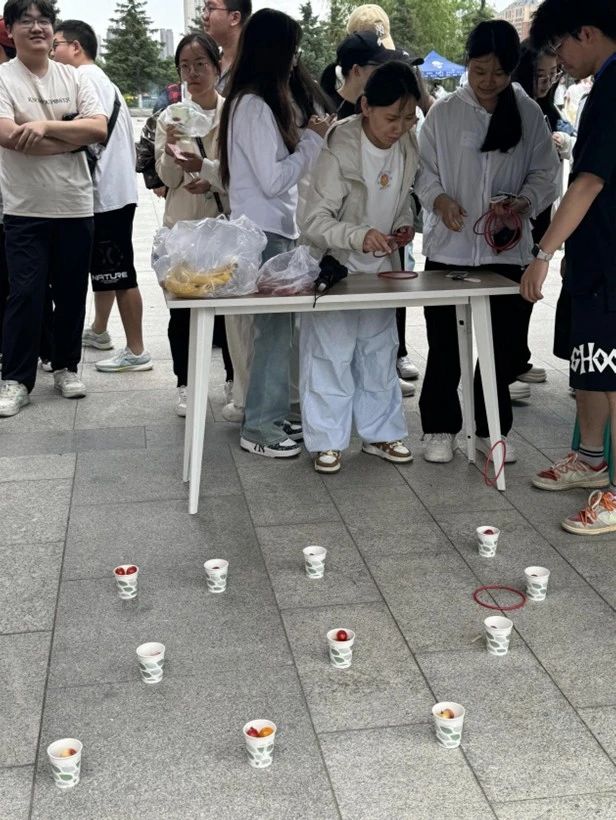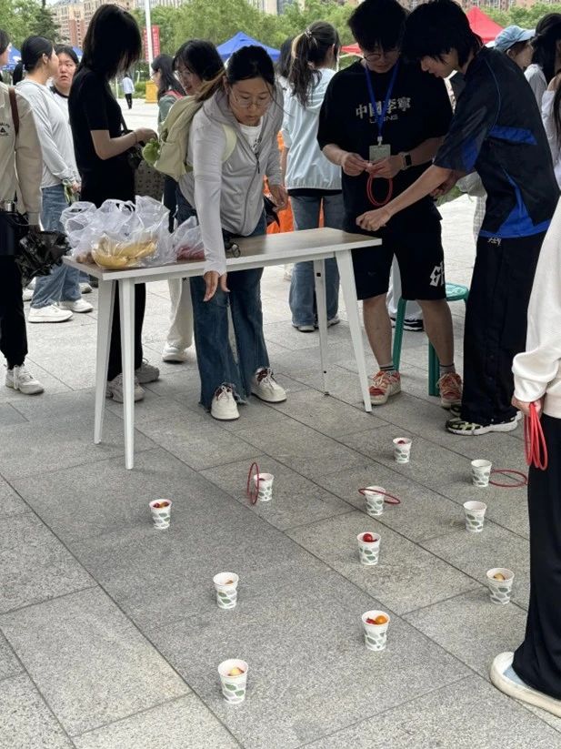 趣味项目围绕“自我关怀”与“情绪调节”设计,兼具娱乐性与心理疏导功能。同学们通过完成游戏收集奖章,兑换奖品。“套圈”游戏区,参与者通过投掷套圈套取水果,“夹气球”环节考验协作能力,两人一组背对夹球前进,笑声此起彼伏。游戏过程中,同学们相互配合、默契十足。“拼字解谜”区域同样人气高涨,同学们需从字卡中抽出四张拼成字。最具挑战性的当属“抖乒乓球”游戏,参与者需将绑在腰间盒子里的乒乓球通过身体抖动全部甩出,限时内完成任务即可获得奖章。同学们捧着用奖章兑换的奖品,笑容洋溢在脸上。