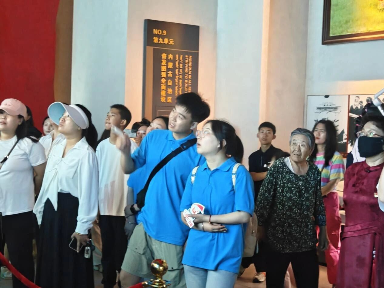 上午,参观队伍首站抵达乌兰夫纪念馆。在庄严肃穆的氛围中,众人跟随讲解员脚步,透过泛黄的文献资料、复原的革命场景,重温乌兰夫同志领导内蒙古革命和建设的壮阔历程。在展区前,革命先辈们“初心如磐”的奋斗故事让参观者深受触动,纷纷用手机记录下珍贵的历史画面。