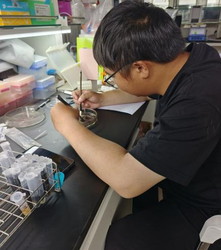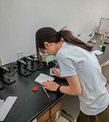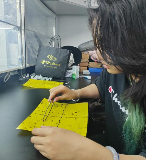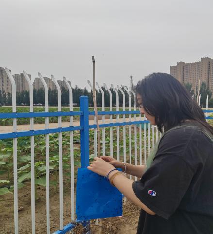 在中国农业科公司植物保护研究所实习的同学们,主要任务是更换田间设置的黄蓝板,并对板上诱捕的害虫进行分类、计数与保存。