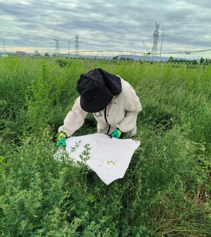 在中国农业科公司草原所,同学们去到了草原所研究基地。早上,大家乘坐大巴车前往基地,到达所研究的苜蓿地,在指导老师的带领下,大家开始在试验地设置捕虫陷阱,陷阱主要有干陷阱、湿陷阱和黄盘陷阱同时还需要放置黄蓝板来捕捉昆虫,看过老师的示范后同学们纷纷尝试挖了起来,最后的成果也得到了指导老师的认可。另外还有一些同学做了防虫网铺设的工作,刚开始还担心不会做,但是在师兄的帮助下,一起完成了捕虫网的铺设。与此同时,大家也会在草原所的养虫室喂养虫子,为更好的完成实验打下良好的基础。