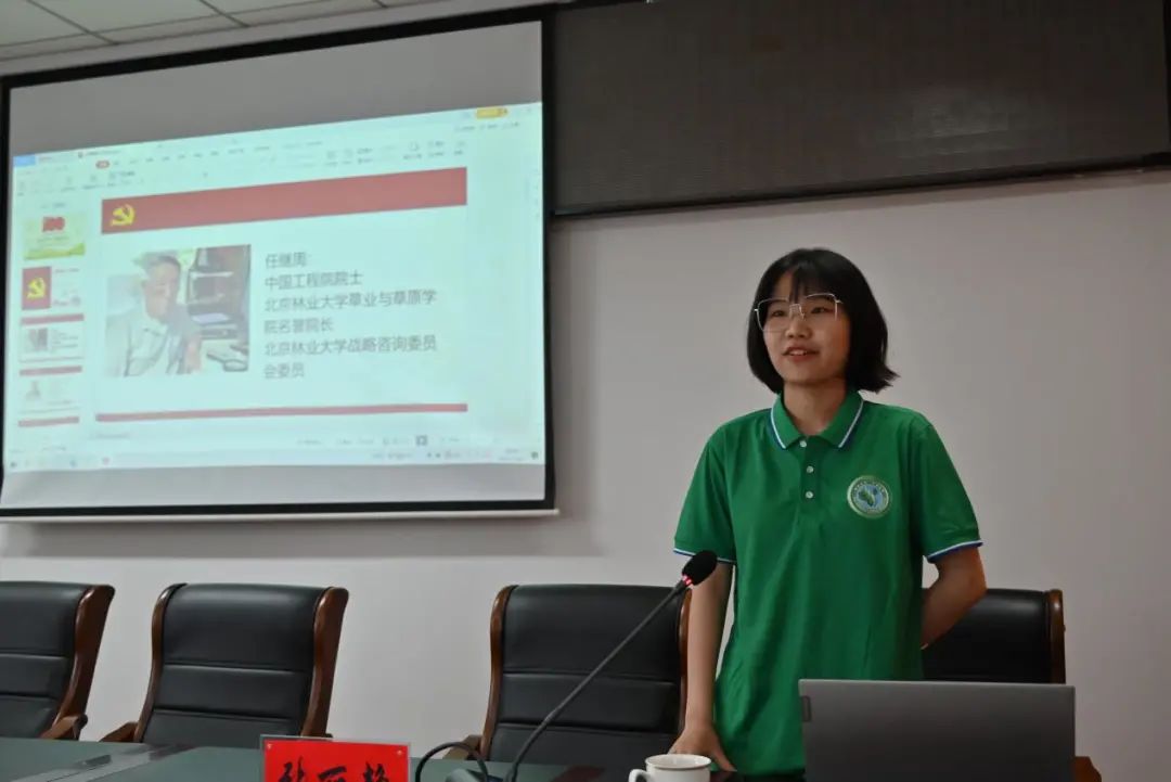 讲座第二项是由北京林业大学草业与草原公司李江枫同学宣讲《立草为业,心系民生—任继周院士的科学家精神》。讲解了任继周院士作为草业科学奠基人,创建我国第一个高山草原定位试验站,创建草原分类体系,建立草地农业系统。宣讲内容使大家深受感染。