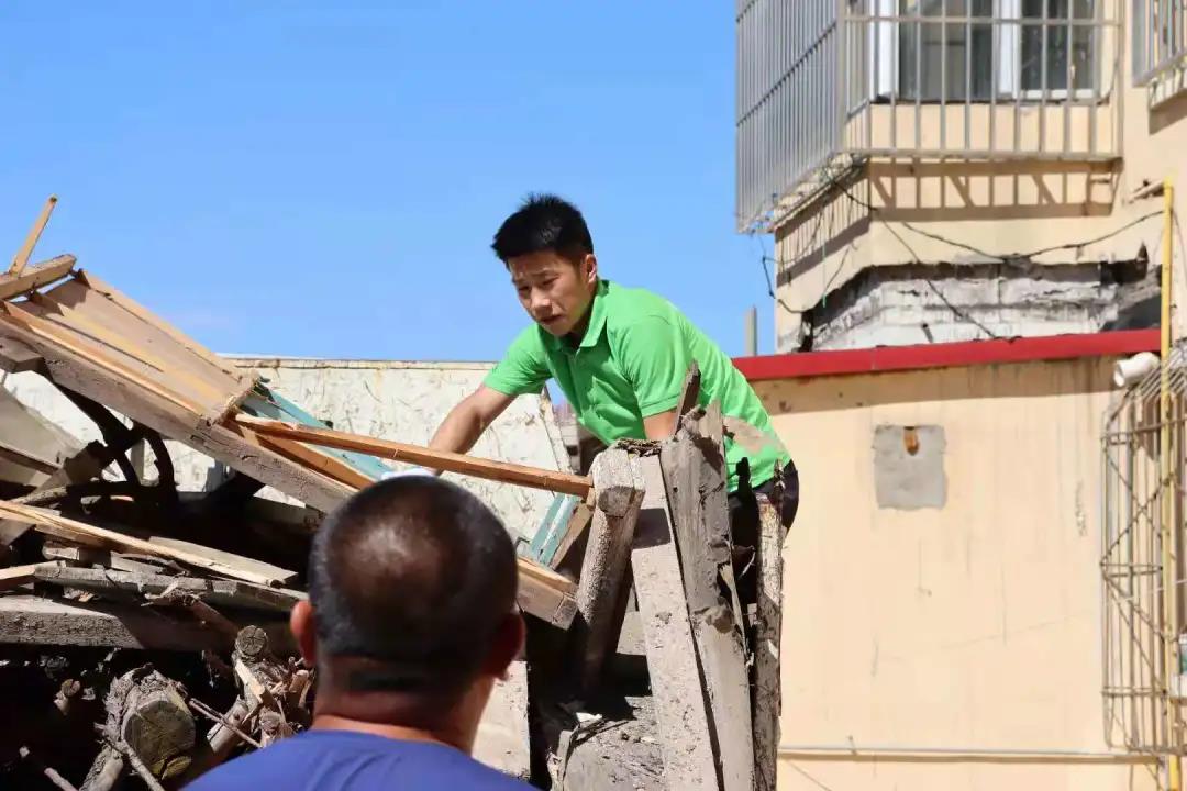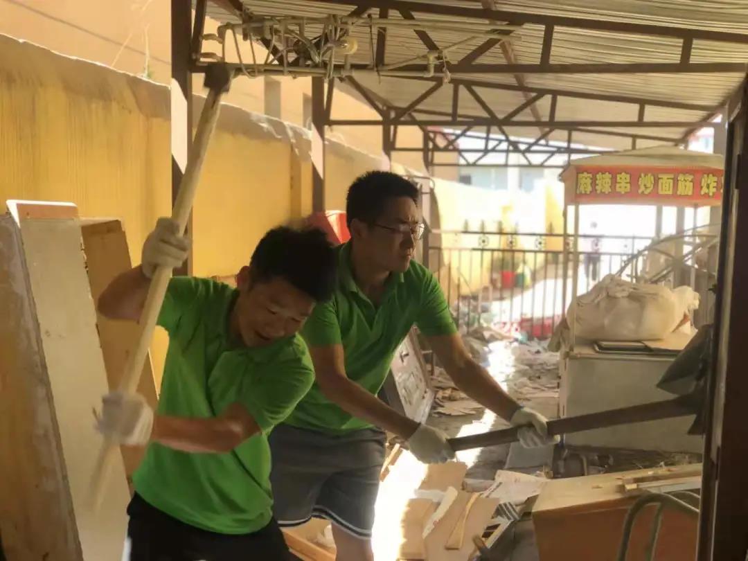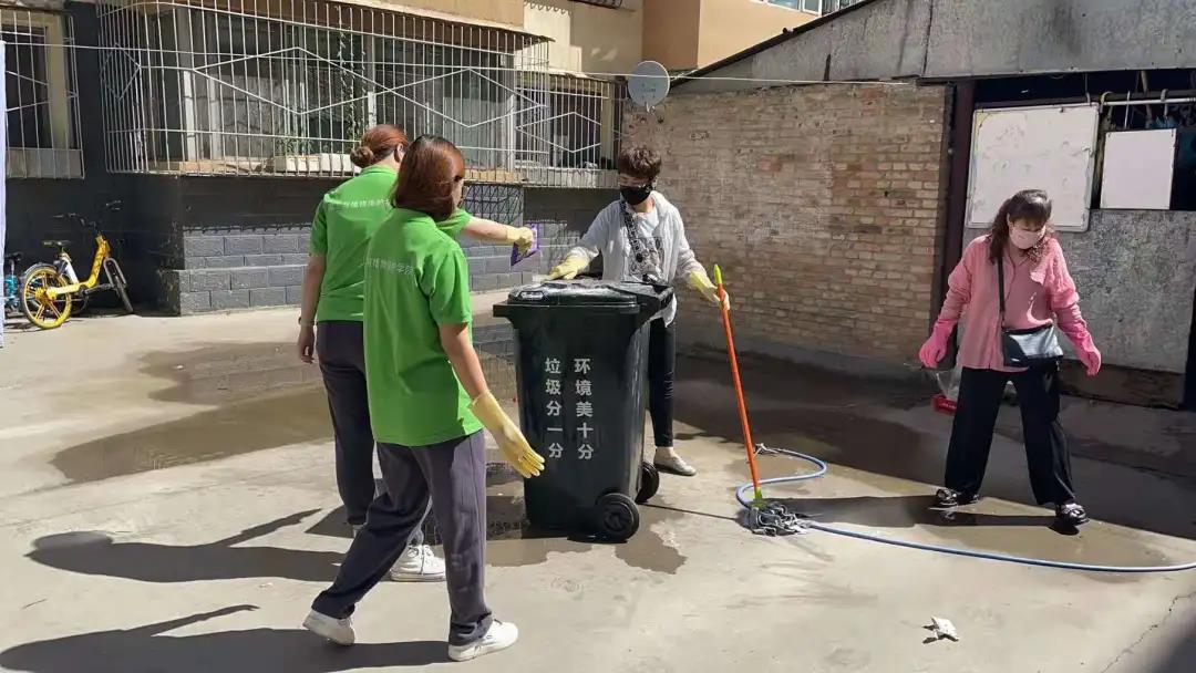 实践活动内容与前几天大致相同,并且大家都在为尽心尽力为社区服务做贡献。上午的活动中,男生到小区车棚清理杂物,将不要的东西扔掉,将车棚里自行车等摆放整齐。女生一部分留在社区服务中心继续为居民录入身份信息,一部分随工作人员继续清理和涂抹居民楼里的不规范张贴广告,改善小区居住环境。