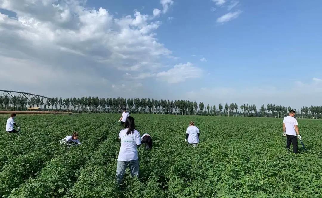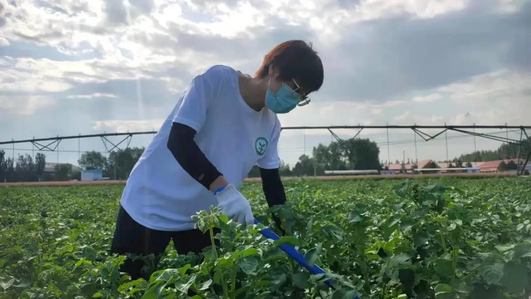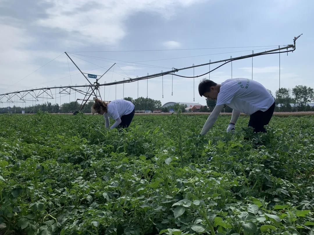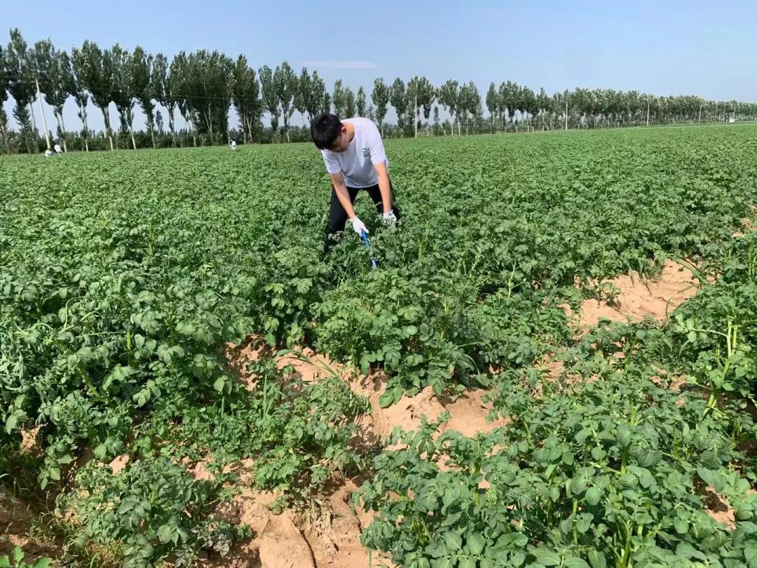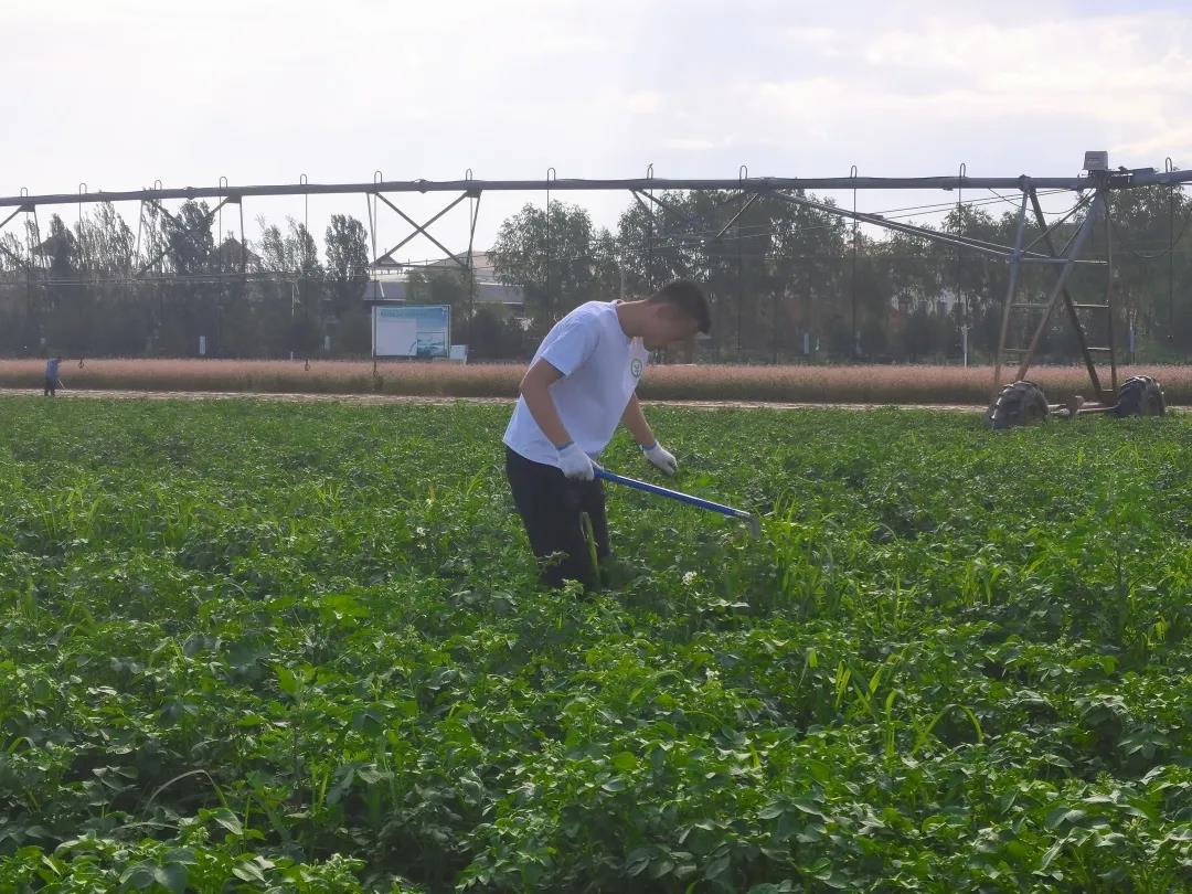 盛夏的滚滚热浪来袭,挡不住乡村实践队队员们的脚步。雨后的空气格外清新,7月5日,园区负责人狄老师带实践队员来到了三亿体育有限公司大约150亩实验田,种植满满的都是农作物,还有一大片红花荞麦地,这品种属于南方的植物,能在北方看到,实属不易,上午大家负责在公司周洪友教授的土豆田里割灰菜。据狄老师讲到:灰菜生长在土豆地里会吸收地里的养分,影响土豆的生长,在马铃薯生长季适时进行中耕除草,能够斩断草根,有效地防除田间萌发的杂草。