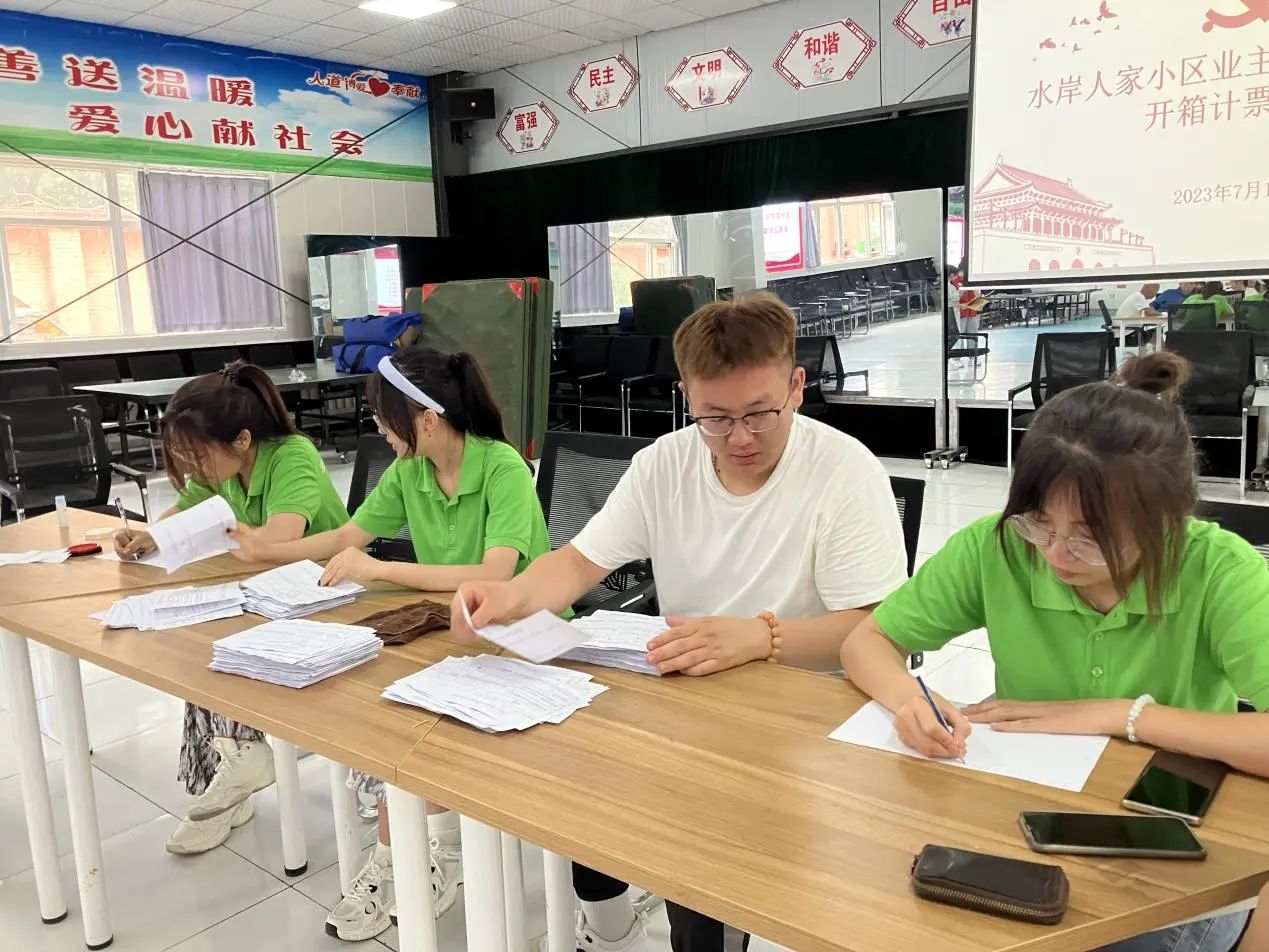 下午,会议准时举行,工作人员宣读完会议的议程后,前来开会的居民们进行投票,实践队队员分别担任唱票员、记票员与监票员,在社区工作人员的指挥下,大家有条不紊地进行计票工作。