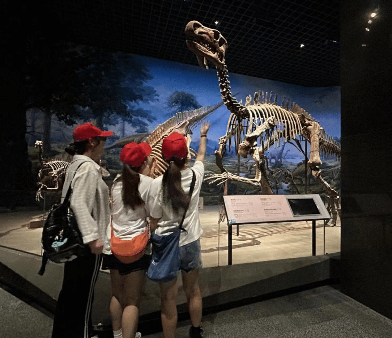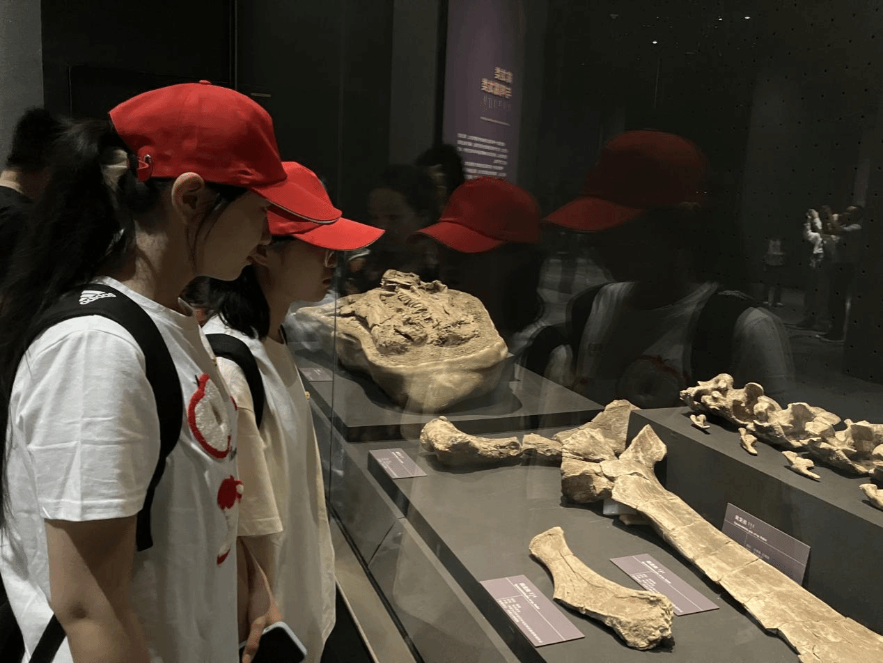 队员们依次排好队在闸机处刷身份证入内,进入大厅首先映入眼帘的是习近平总书记对内蒙古的寄语:建设亮丽内蒙古,共圆伟大中国梦。馆内大致分为四部分:一是内蒙古革命文物陈列,二是内蒙古古生物和古人类陈列,三是内蒙古民族文物陈列,四是历史文物陈列。队员们被陈列在展示柜内化石所吸引,观赏化石,了解曾经的时代变迁,沧海桑田。队员们或拿起手机拍照,留下纪念;或仔细观察化石上面的条理,感知时代;或是研读对不同文物的介绍,增添知识阅历。