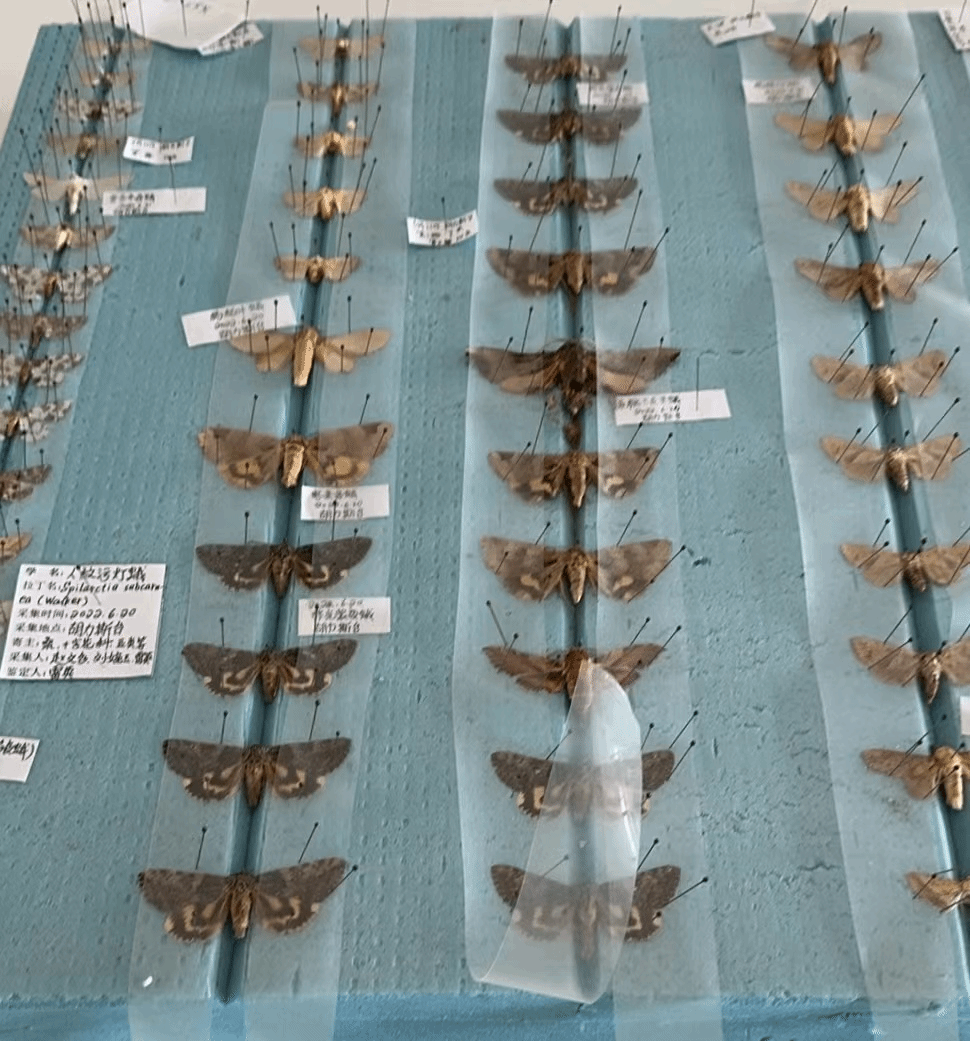 利用兴安盟植保所和胡力斯台基地设置的高空基地测报灯采集了大量的鳞翅目、鞘翅目昆虫,为使人们熟知这些昆虫的种类、为害情况等,当地企业将部分昆虫整理成标本以供展览、学习。“智勇实践队”小组成员利用在公司所学习的制作标本的知识和技巧,积极配合当地完成该工作,将昆虫展翅整姿用于标本制作。
