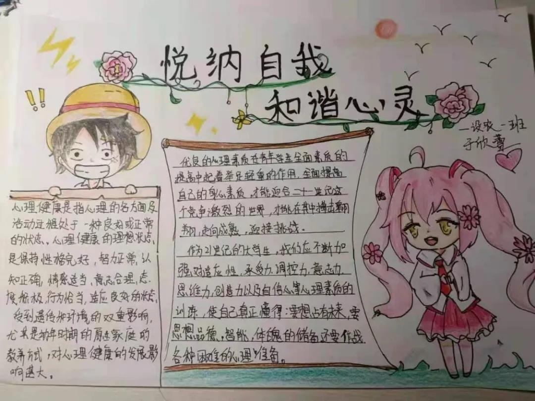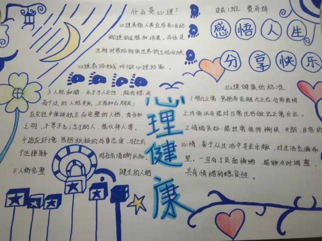 以下图片是来自2021级设农一班的同学们精心制作的关于心理健康的手抄报。
