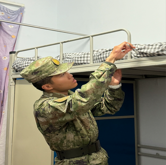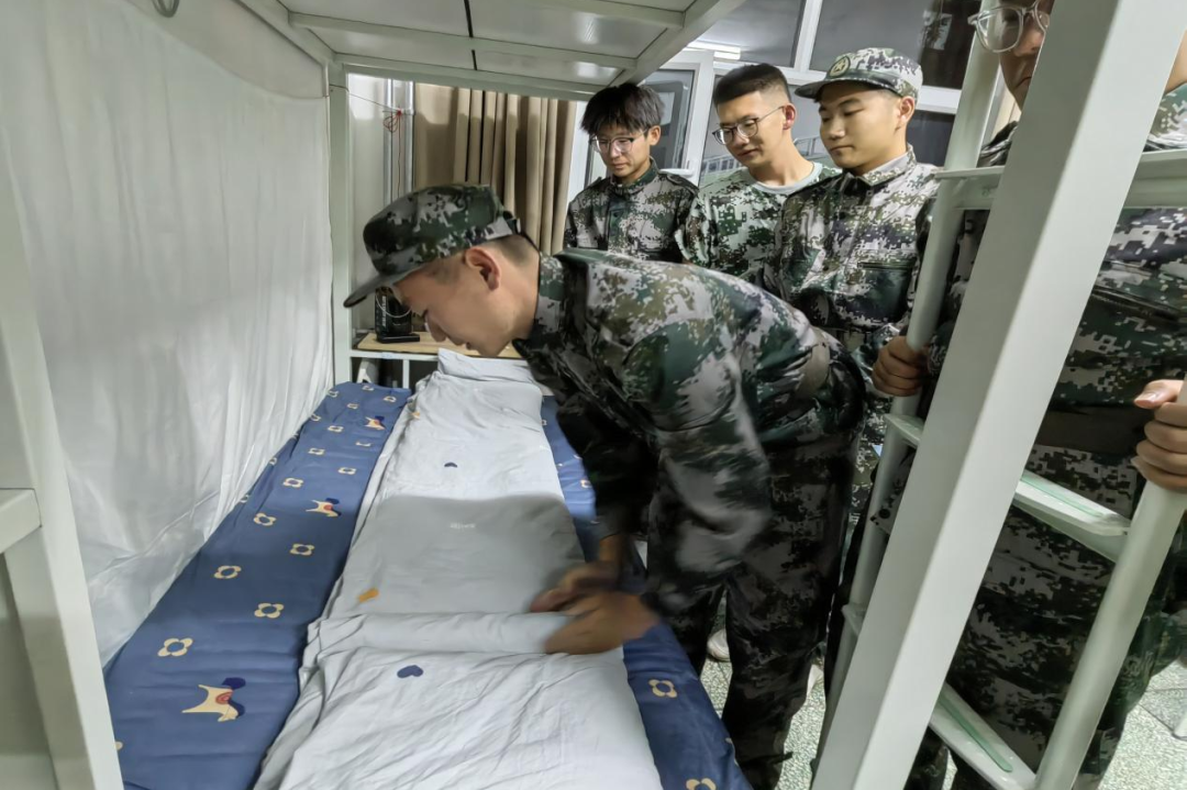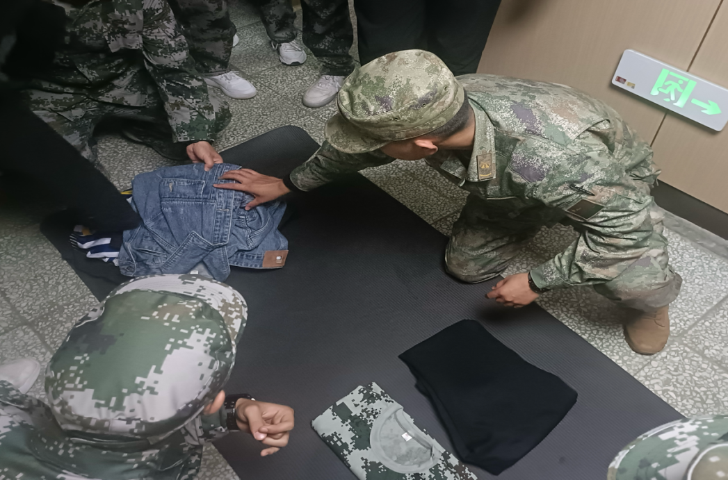 本次内务指导过程中,教官严谨负责,在每个宿舍进行详细的讲解与示范,重点对被褥和衣服的叠法、书桌的整理、行李的摆放等内容进行一一教学,着重强调了做好此类事情需要一定的熟练度以及耐心。教官全程认真且专业,充分调动了同学们的积极性,同学们多次观看自己拍摄的视频,对宿舍进行针对性的整理。