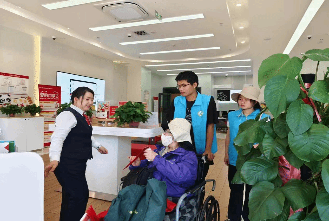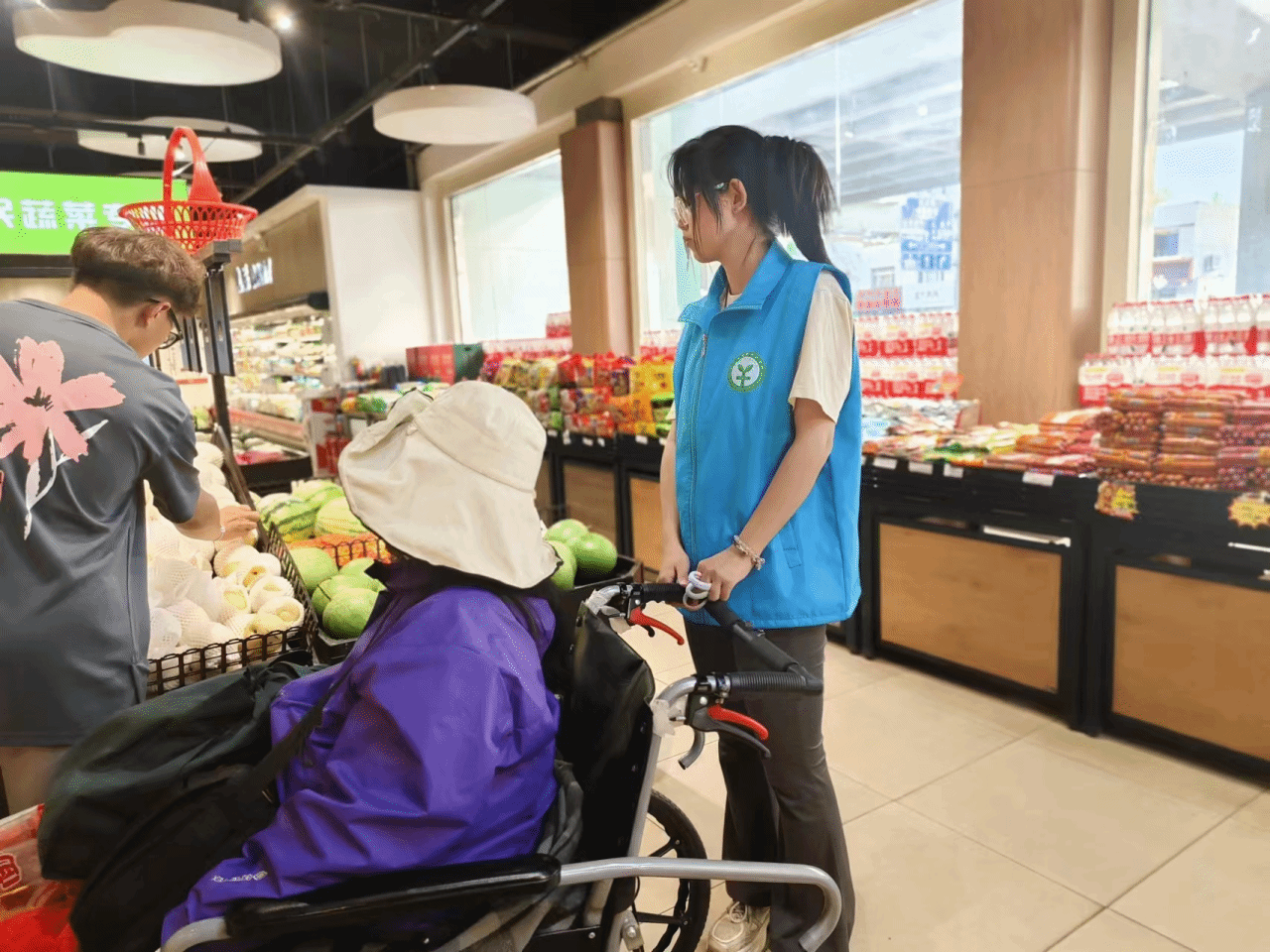 在了解了叶大姐的需求后,志愿者们带着叶大姐外出,帮助叶大姐去银行办理业务,购置生活用品,一路畅谈交流。叶大姐平日里出行不便,有志愿者的帮助,叶大姐的日常生活需求得到了基础的保障。