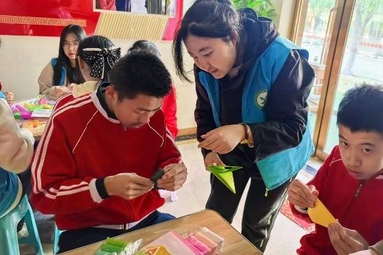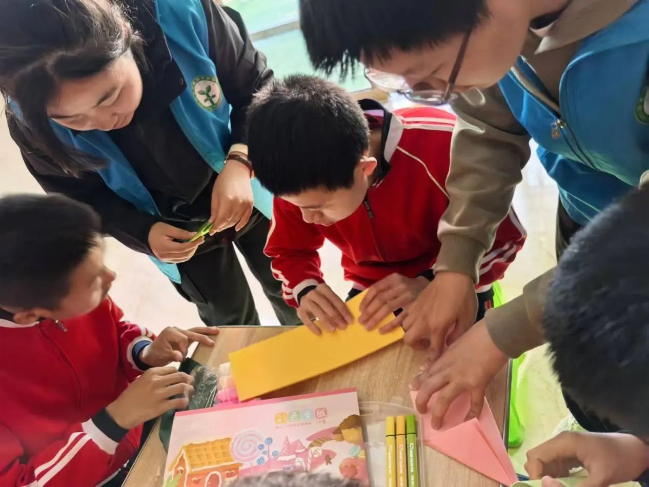 来到这里后,志愿者们与这里的孩子一起学手势舞,阳光洒在他们身上,映照着一张张充满期待的笑脸。随后,志愿者们与孩子们进行了亲密互动,打沙包、老鹰抓小鸡等经典游戏让院子里充满了欢声笑语。小朋友们在游戏中尽情释放着活力,与志愿者们的距离也在不知不觉中拉近。接着,大家一起做手工、画画,孩子们用画笔和粘土描绘出心中的美好世界,志愿者们则在一旁耐心陪伴、悉心指导。此外,大家还一起放飞了自己亲手折的纸飞机。纸飞机在空中飞翔,也承载了孩子们的梦想和希望。