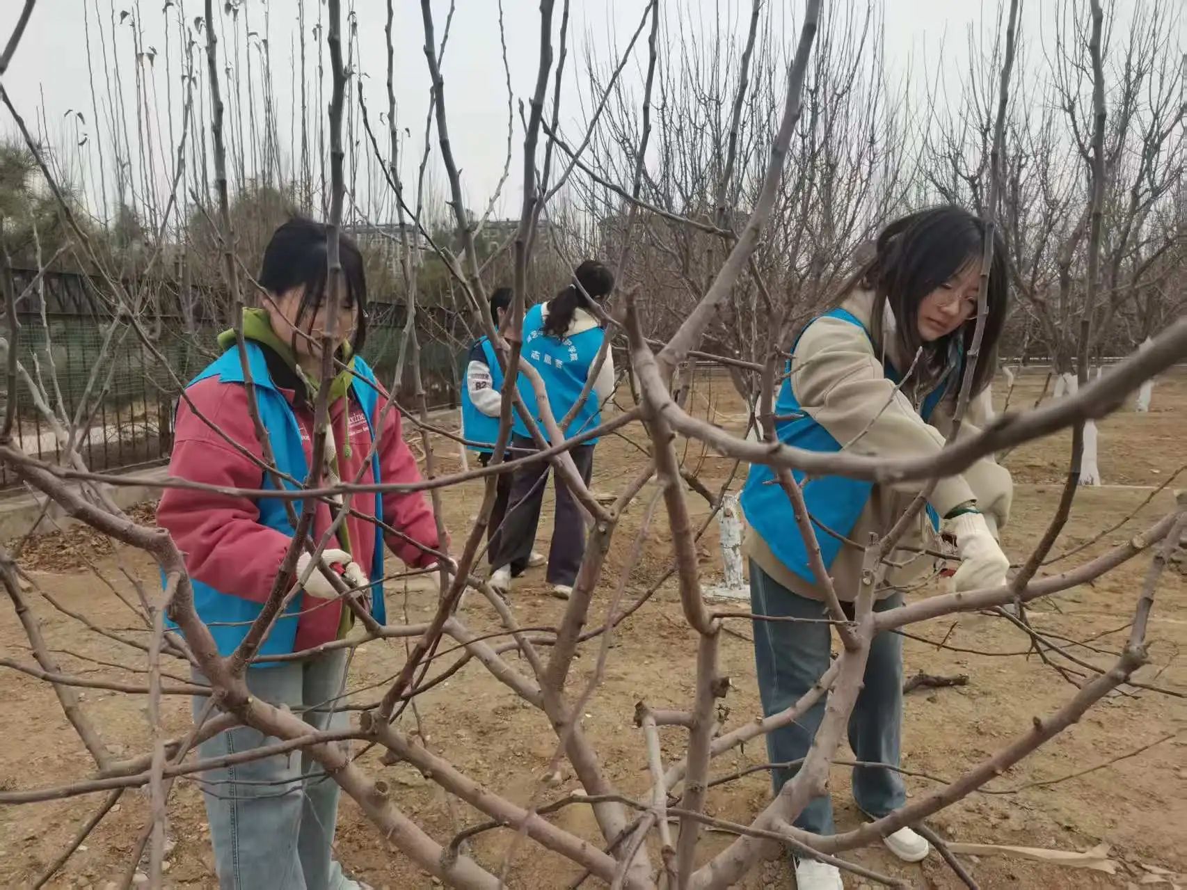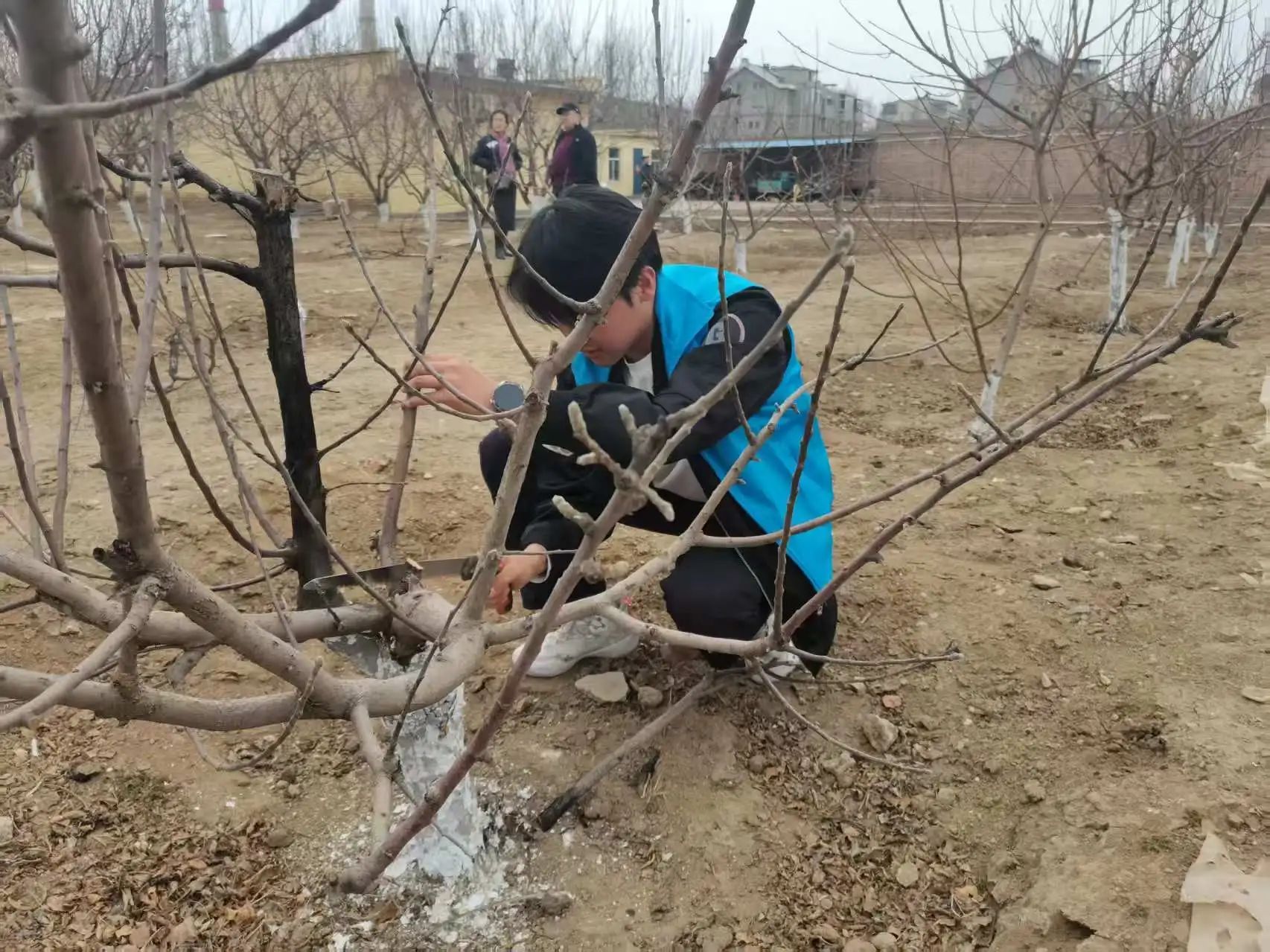 在李老师的指导下,志愿者们拿起剪刀,认真修剪果树枝条,在实践中不断思考并应用课堂所学的知识。通过这次活动,同学们不仅巩固了专业本领,而且通过发挥专业特长为社会贡献力量,真正实现了知行合一。经过一下午的劳动,同学们深刻认识到作为农科学子,应立足农田,服务人民,提升实践能力和社会责任感,用实际行动为农业发展做出更大贡献。