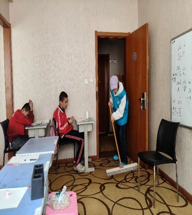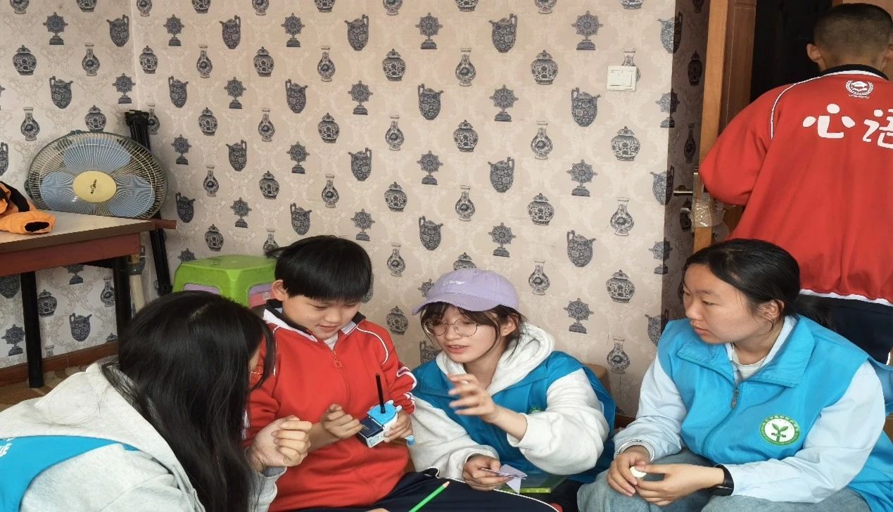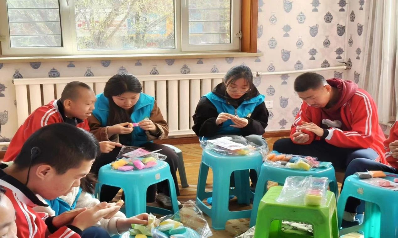 活动中,志愿者们分为两组。室内,一组志愿者清扫地面。他们手持扫帚,仔细打扫每一寸地面,不放过任何一处灰尘,在大家的共同努力下,心语康复中心焕然一新。另一组志愿者与孩子们围坐在手工桌前,大家与孩子们围坐一团,桌上摆满彩纸和粘土。志愿者们手把手教孩子们折纸,伴随着轻柔的讲解,纸飞机、千纸鹤在孩子们手中诞生,承载着他们的欢声笑语。玩粘土时,孩子们的想象力肆意飞扬,在志愿者的耐心引导下,栩栩如生的花朵、灵动的卡通形象逐一呈现,每一件作品都充满童真。
