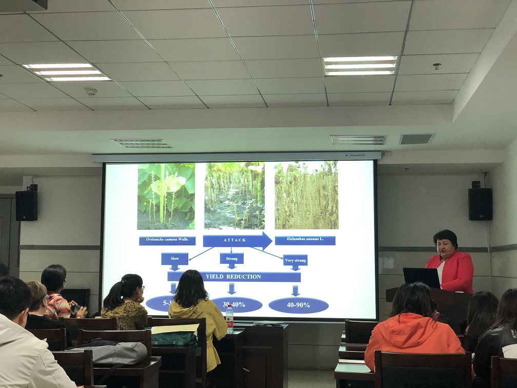 随后,由Maria DUCA教授和Maria Joita–Pacureanu研究员分别以《Current Situation of Sunflower Broomrape in the Republic of Moldova》和《Romanian agriculture with special referring to the research work, for the main field crops at NARDI Fundulea. Breeding of sunflower》为题做了学术报告,与参会人员进行了向日葵抗性遗传育种方面的学术交流。