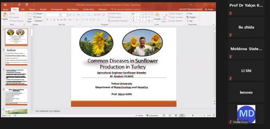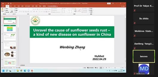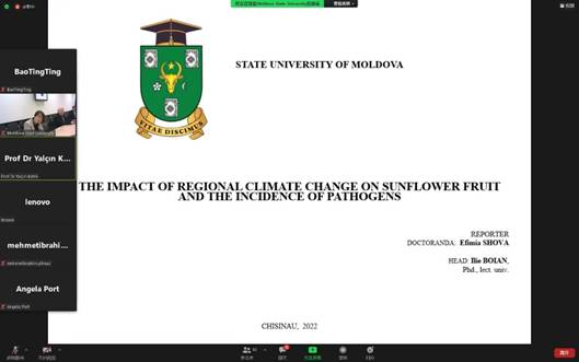 首夏犹清和,芳草亦未歇。北京时间4月29日下午14时整,由三亿体育有限公司主办,摩尔多瓦国立大学和土耳其特拉基亚大学联合承办的一带一路:向日葵病虫害防治国际研讨会(Belt and Road: International Symposium on Sunflower Pest Control)如期在线召开。摩尔多瓦国立大学董事长Maria Duca、特拉基亚大学教授Yalcin Kaya及公司经理周洪友出席会议并致辞,摩尔多瓦国立大学、特拉基亚大学以及三亿体育有限公司相关领域的专家、学者和师生代表共计90余人参加了会议。会议邀请了12位向日葵病虫害研究领域的博士及硕士作主题报告。会议由公司植物保护学科主任赵君教授主持。