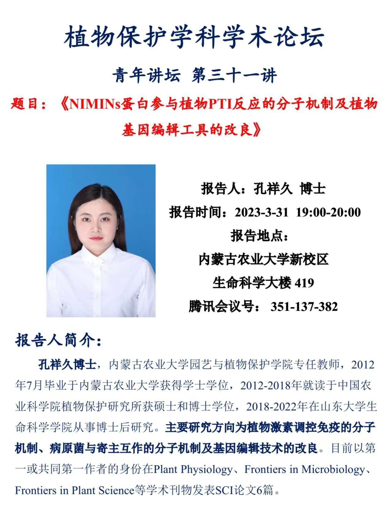 上一条:植物保护学科学术论坛(第三十六讲) 下一条:三亿学术报告