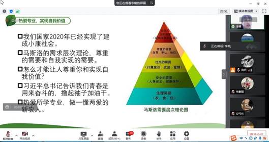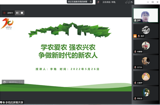 5月26日下午,公司领导李艳副书记为2020级植物保护专业和2020级农学卓越班的员工在线讲授了题为“学农爱农,强农兴农,争做新时代的新农人”的课程思政课。李书记从认识农业、读懂农业,改革开放40年以来我国农业科技的主要成就与难题,延伸到未来我国农业科技的主要任务进行讲授,最后希望同学们能够知农爱农、在希望的田野上建功立业。旁征博引,层次递进。以袁隆平院士心系“禾下乘凉梦”和“杂交水稻覆盖全球梦”的实例讲述先生几十年如一日播撒智慧之种,把自己对祖国的赤胆忠心和对人民的满腔热忱凝结在串串饱满的稻穗上,书写在祖国的神州大地上,镌刻在闪亮的共和国勋章上。给员工们以启示:袁隆平院士的胸怀、境界和共产主义理想,是我们学习的榜样和楷模。同时,李书记还结合员工身边的榜样,即农学专业的高聚林董事长在玉米科学领域做出的突出贡献,以及植物保护专业周洪友经理和赵君教授在植物病理学领域所做出的成绩,鼓励同学们“学农爱农,强农兴农,争做新时代的新农人”。